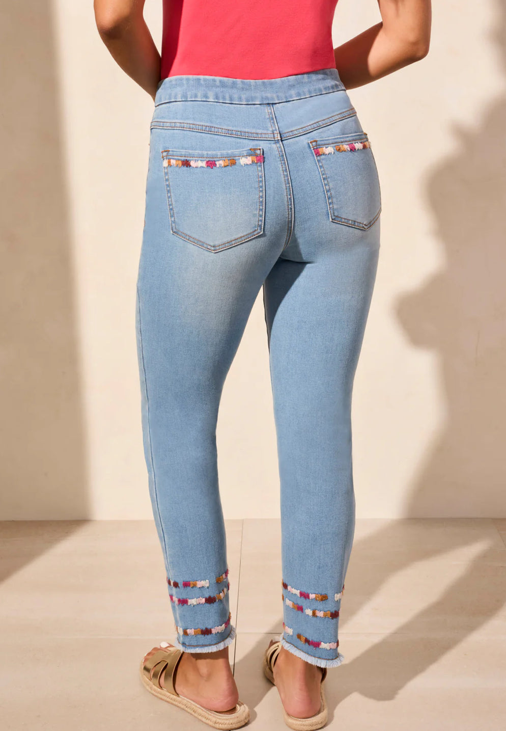 AUDREY PULL-ON SLIM ANKLE JEANS WITH EMBROIDERY